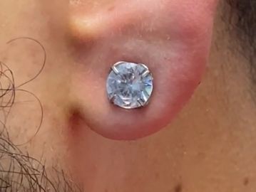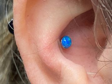 Conch piercing includes threadless surgical steel labret studs. Gem upgrade +$10.