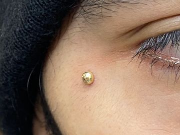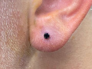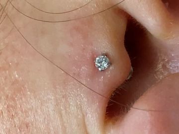 Tragus piercing includes threadless surgical steel labret studs. Gem upgrade +$10.
