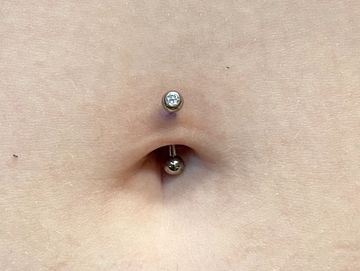 Navel Piercing includes a 14ga internally threaded titanium curved barbell.