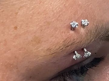 Eyebrow Piercing includes an internally threaded titanium curved barbell with small gems on both ends. 16ga