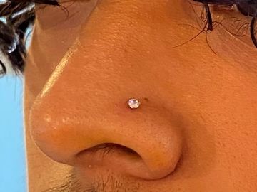 Nose piercings include an 18ga bent "L" bar. Gem upgrade +$10.