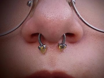 Septum piercings include an internally threaded surgical stainless steel circular barbell (horseshoe).